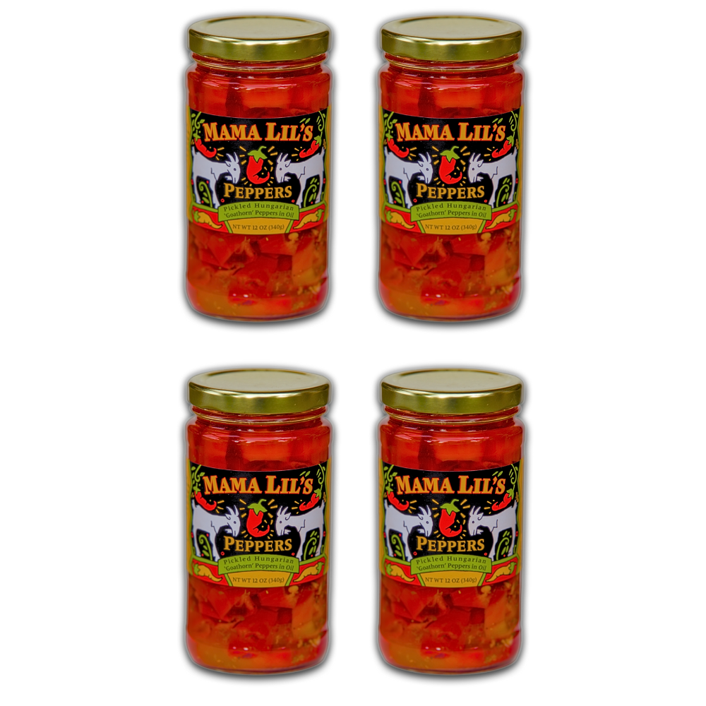 Mama Lil's Mildly Spicy Pickled Peppers in Oil are the perfect balance of rich, ripe pepper flavor and a kick of heat! Our original Mildly Spicy Peppers in oil are pickled Hungarian "Goathorn" wax peppers packed in a savory herb oil blend with a touch of garlic. Describing natural pepper heat is subjective, but our Mildly Spicy peppers tend to be about as hot as medium salsa.